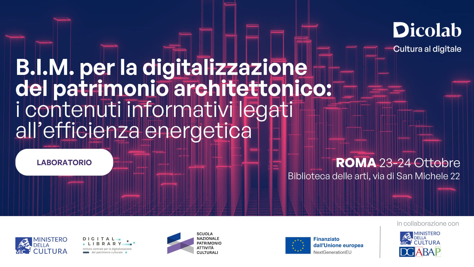Il corso è parte dell'offerta formativa Dicolab. Cultura al digitale, un'iniziativa del Ministero della Cultura, Digital Library, Scuola nazionale del patrimonio e delle attività culturali, finanziato da Next generation EU.